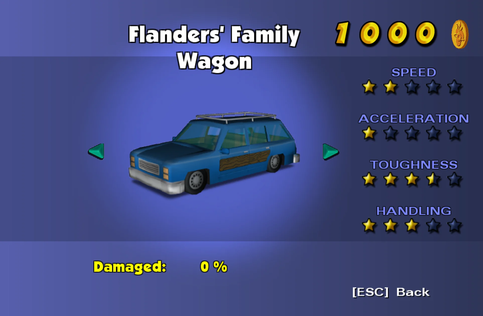 - It uses the Family Wagon as a base, but I have altered the stats and audio to make it more unique; it has a higher top speed, toughness, and mass than the Family Sedan, but lower acceleration and handling - overall it has half a point higher stats than the Family Sedan, as I always saw the Flanders' as being a bit better off than the Simpson's.